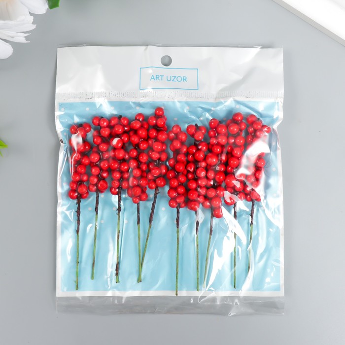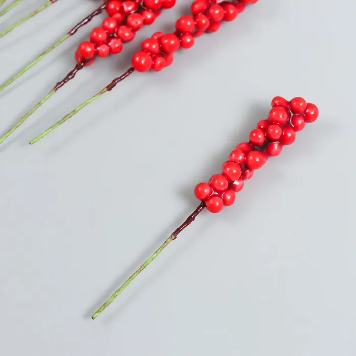 Декор для творчества «Веточка с ягодами», красный, набор 10 шт., 1×1×9 см