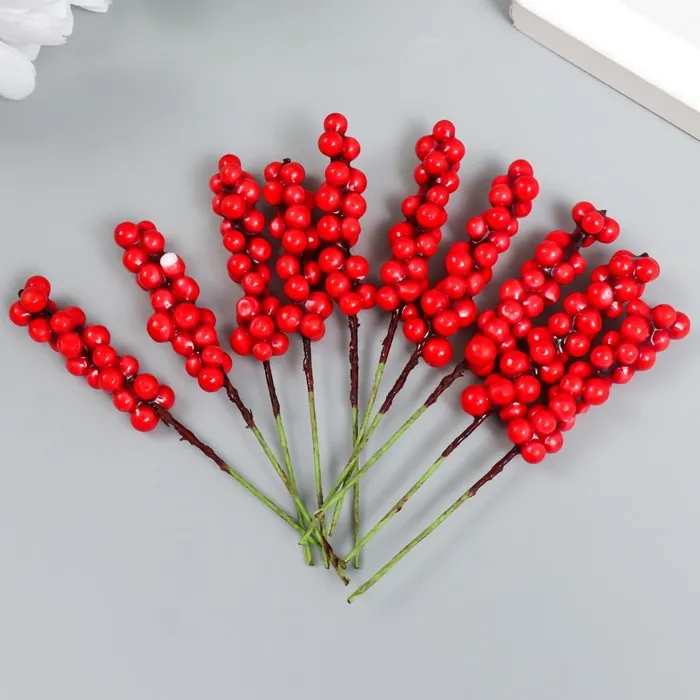 Декор для творчества «Веточка с ягодами», красный, набор 10 шт., 1×1×9 см — Характеристики