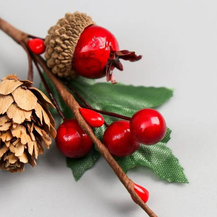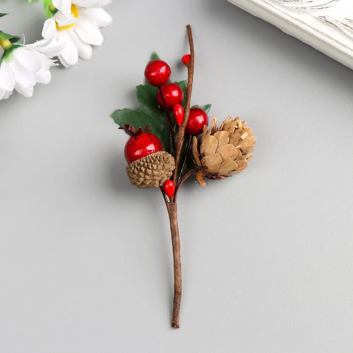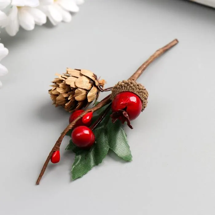 Декор для творчества "Веточка с шишкой, 3-мя ягодками и жёлудем" 8,5 см — Характеристики