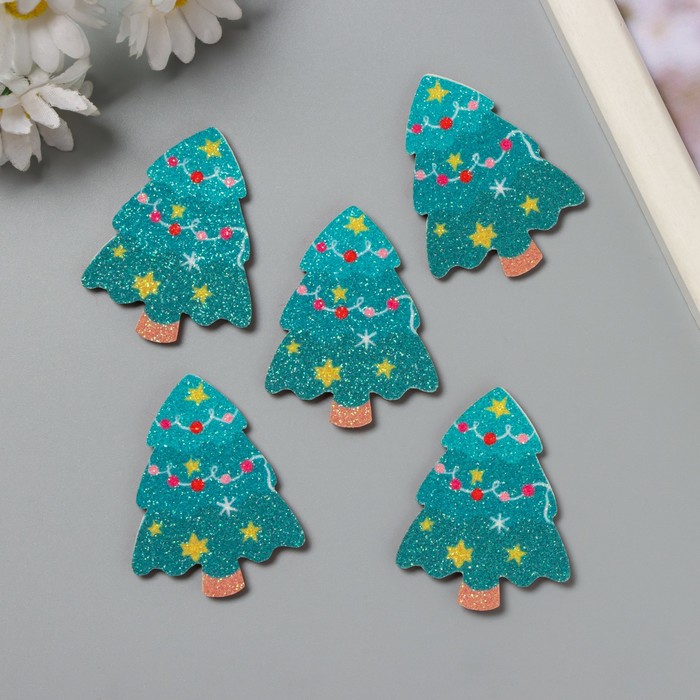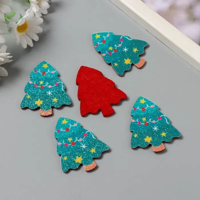 Декор для творчества войлок блеск "Ёлочка с гирляндой" 5,4х4,1 см