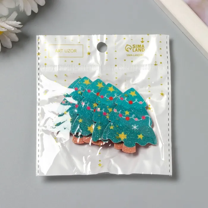 Декор для творчества войлок блеск "Ёлочка с гирляндой" 5,4х4,1 см — Характеристики