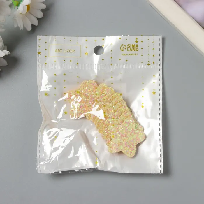 Декор для творчества войлок блеск «Звезда», жёлтый, 3×3 см