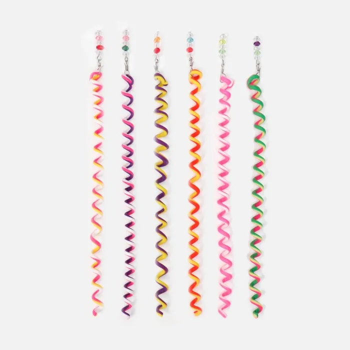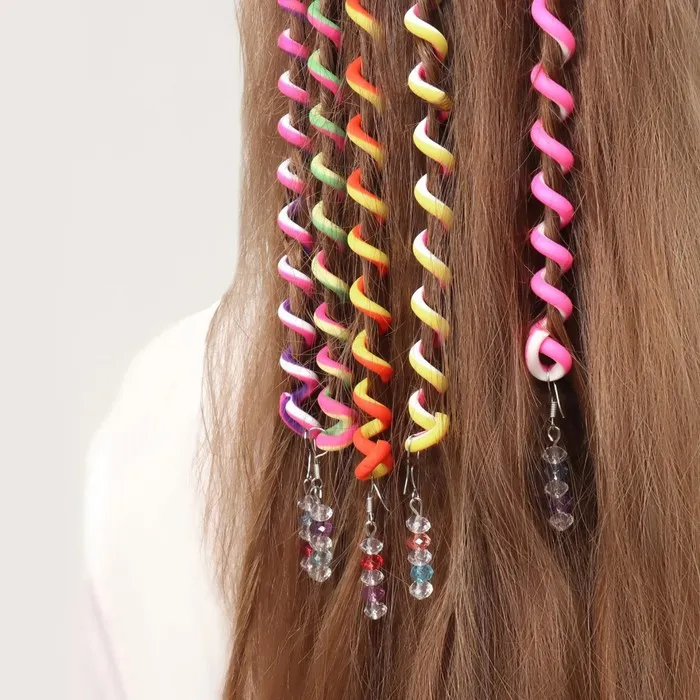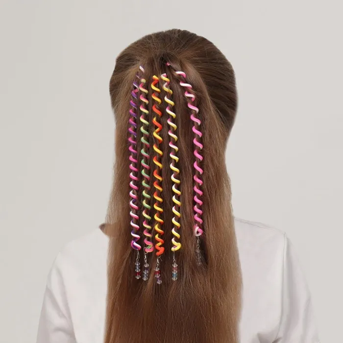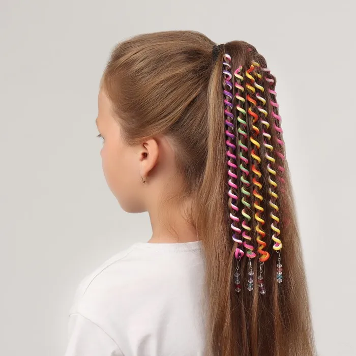 Волшебный декор для волос поможет подарить вашей девочке модную прическу за считанные секунды. Мягкие разноцветные спирали прекрасно растягиваются и не травмируют структуру волос. Изделия легко использовать: нужно лишь закрутить спираль вокруг пряди — и оригинальная укладка готова! А если в причёску добавить больше декора, то он станет ярче и привлекательней.
