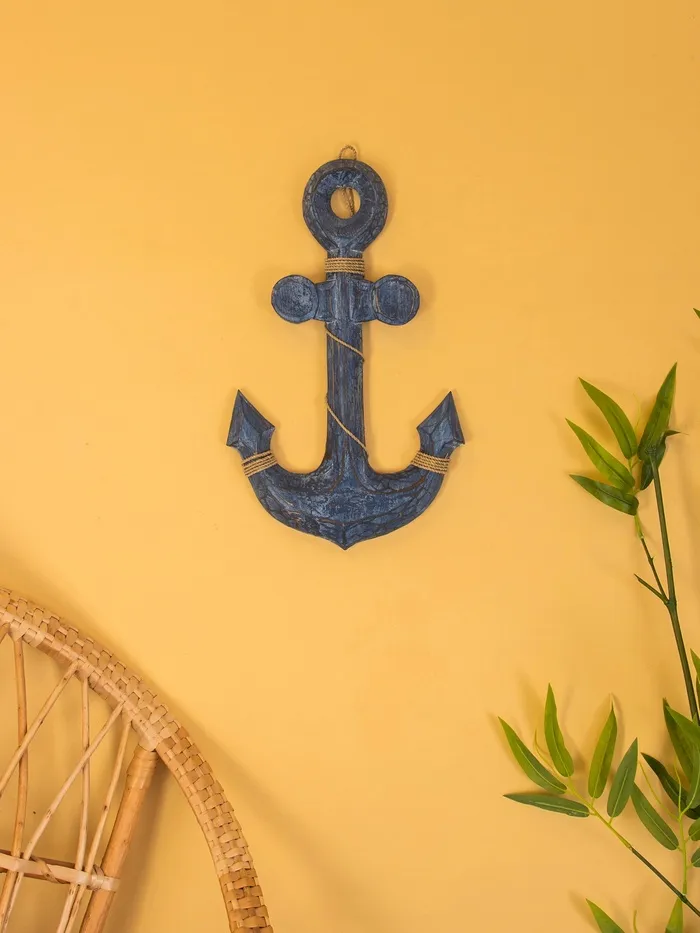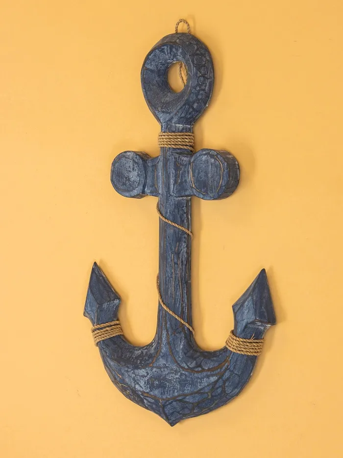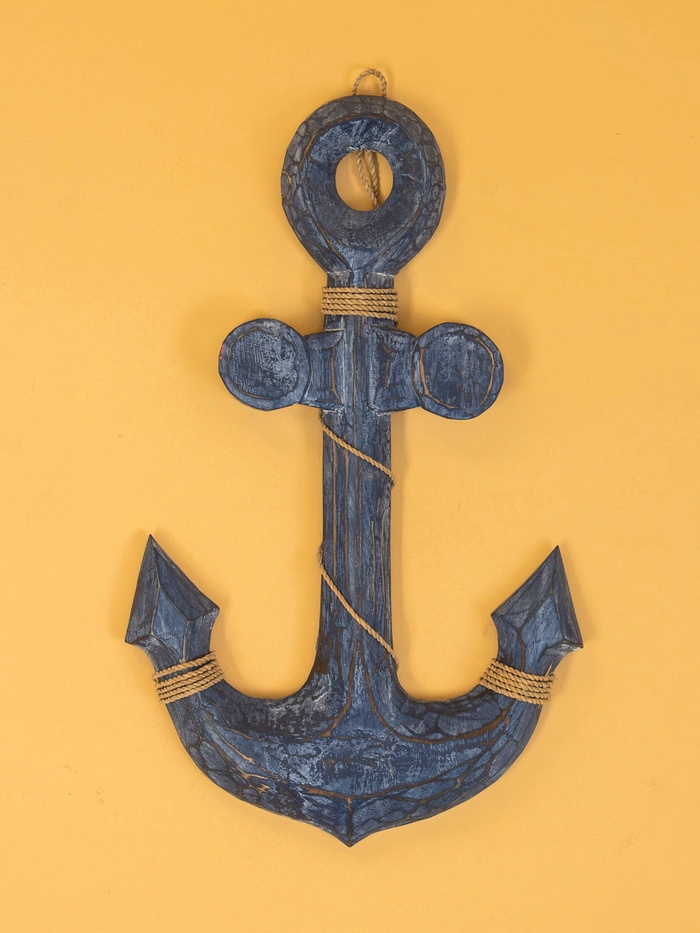Декор интерьерный «Якорь», 23×2×40 см, дерево, синий — Характеристики