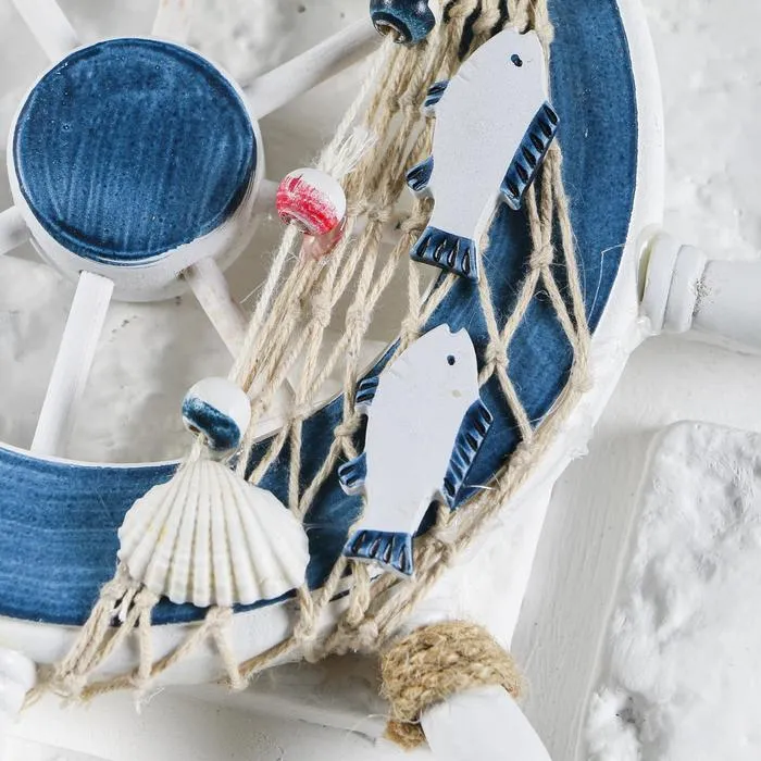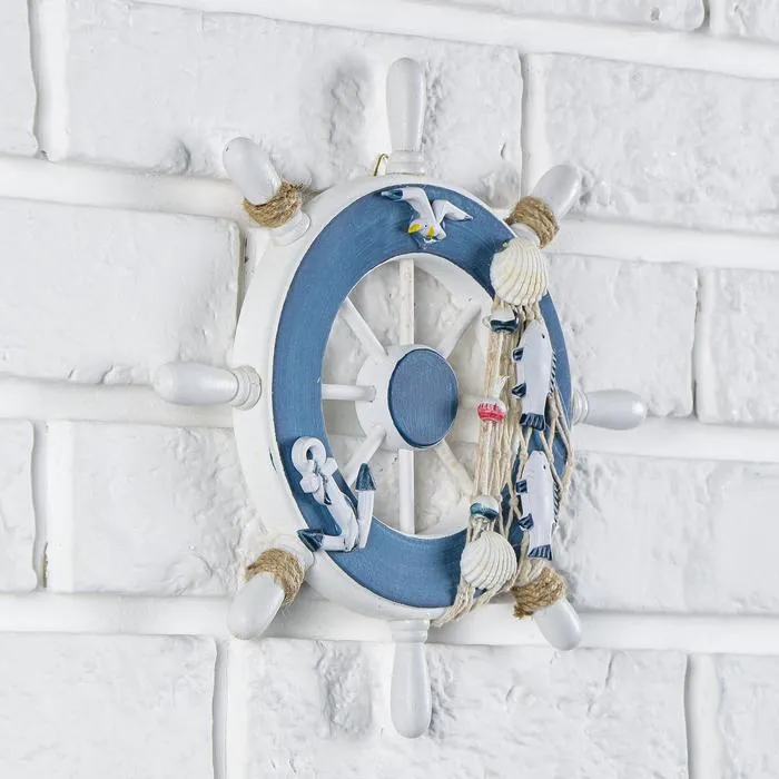 Декор интерьерный «Штурвал» на стену, бело-синий, 23 х 23 х 1,5 см — Характеристики