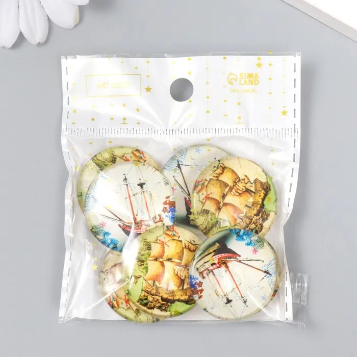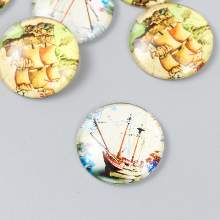 Декор (кабошон) для творчества стекло «Корабль», d=3 см, МИКС — Характеристики