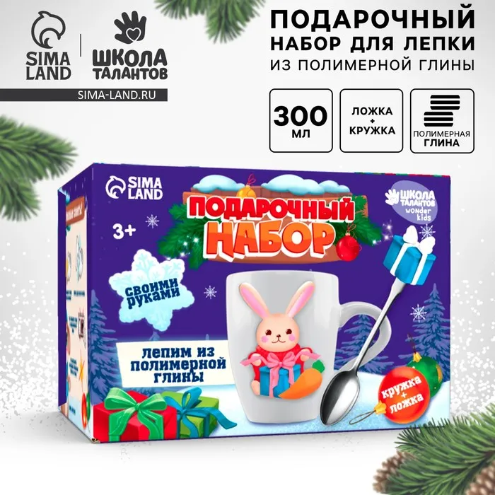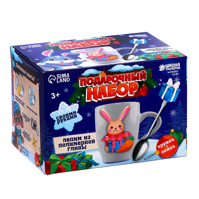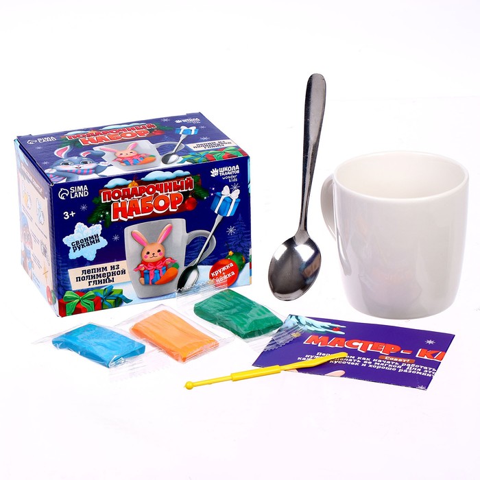 Декор кружки и ложки полимерной глиной на новый год «Зайка и подарок», набор для творчества — Характеристики