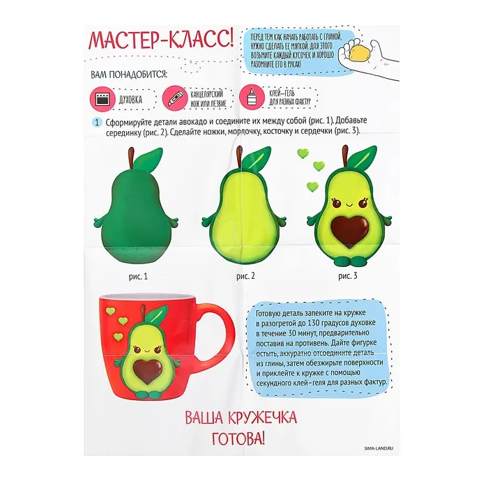 Декор кружки полимерной глиной. Лепка на кружке «Авокадо», набор для творчества — Характеристики