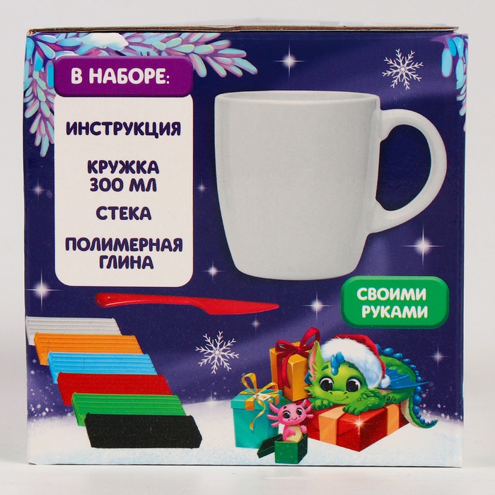 Декор кружки полимерной глиной. Лепка на кружке «Новый год! Дракоша с шариком», набор для творчества — Характеристики