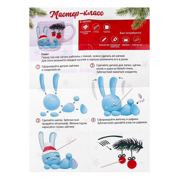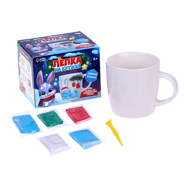 Декор кружки полимерной глиной на новый год «Голубой зайка», набор для творчества — Характеристики