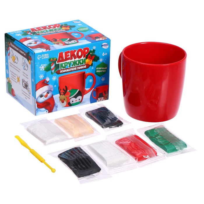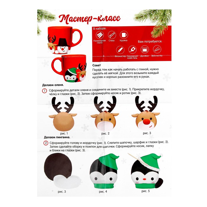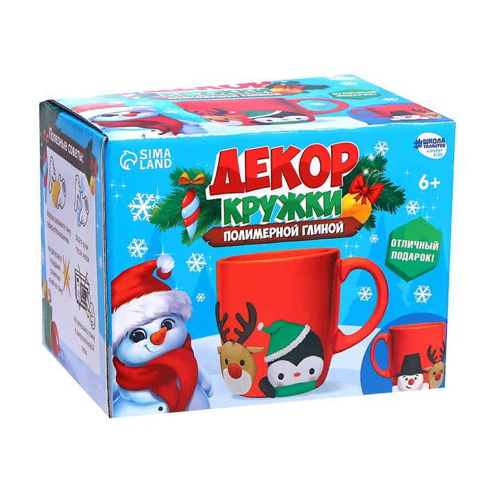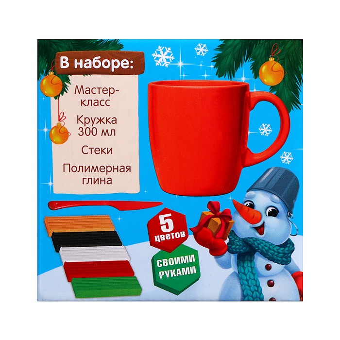 Декор кружки полимерной глиной на новый год «Пингвин, олень и снеговик», 300 мл, набор для творчества — Характеристики