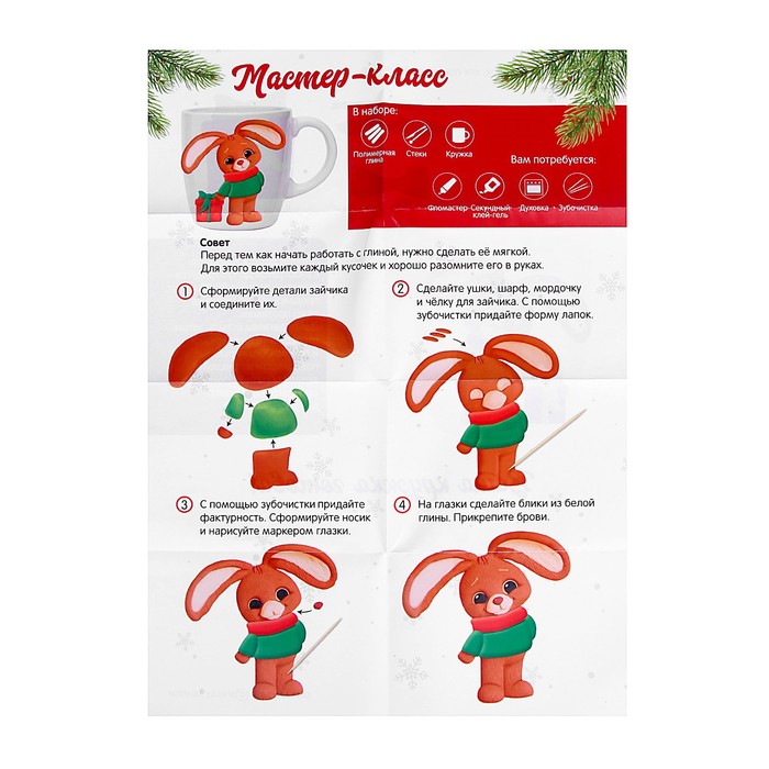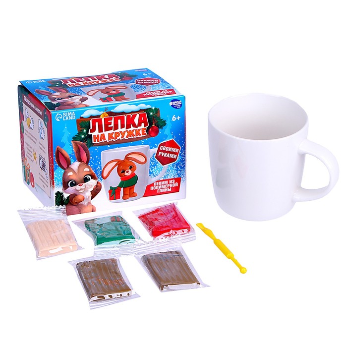 Декор кружки полимерной глиной на новый год «Зайка с подарком», набор для творчества — Характеристики