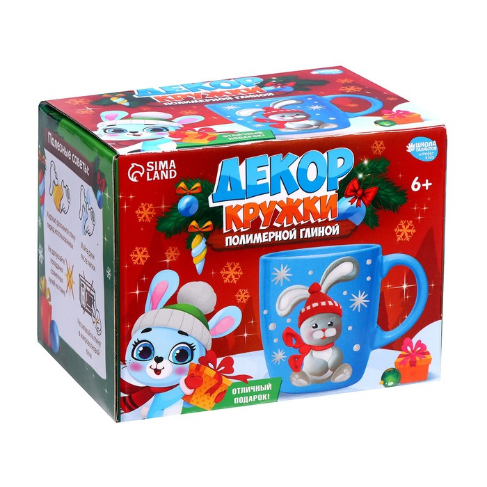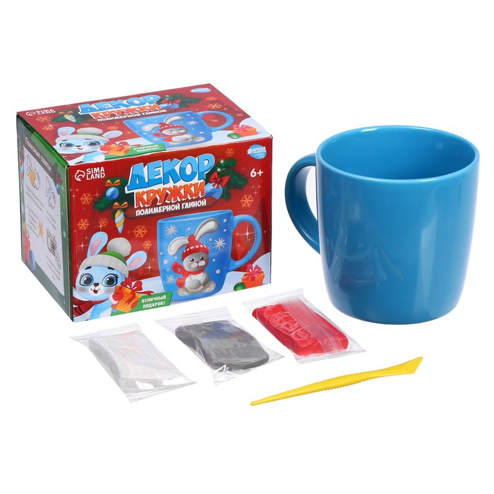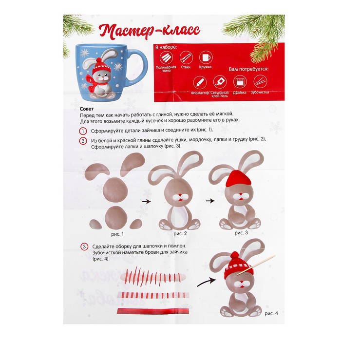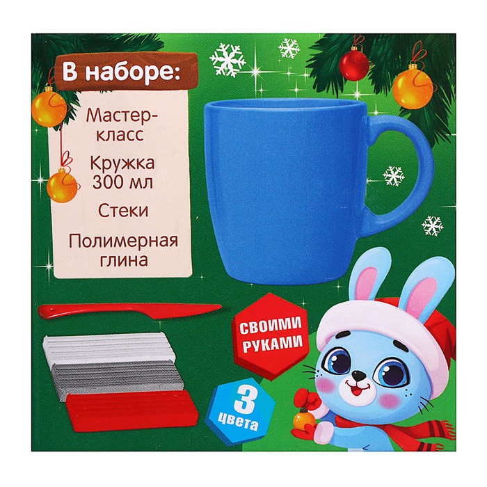 Декор кружки полимерной глиной на новый год «Зайка в шапочке», 300 мл, набор для творчества — Характеристики