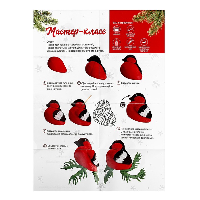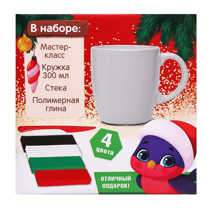 Декор кружки полимерной глиной «Новый год! Снегирь на ветке», набор для творчества — Характеристики