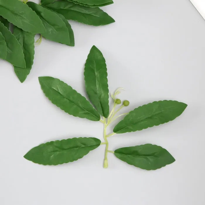 Фигурный декор в виде листьев на веточке сделан из пластика и выглядит как натуральный.