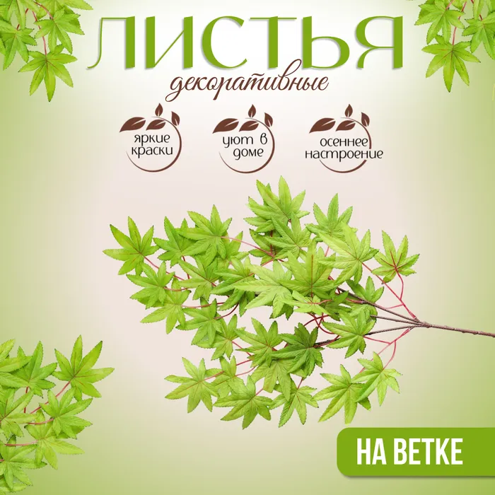 Фигурный декор в виде листьев на веточке сделан из пластика и выглядит как натуральный.