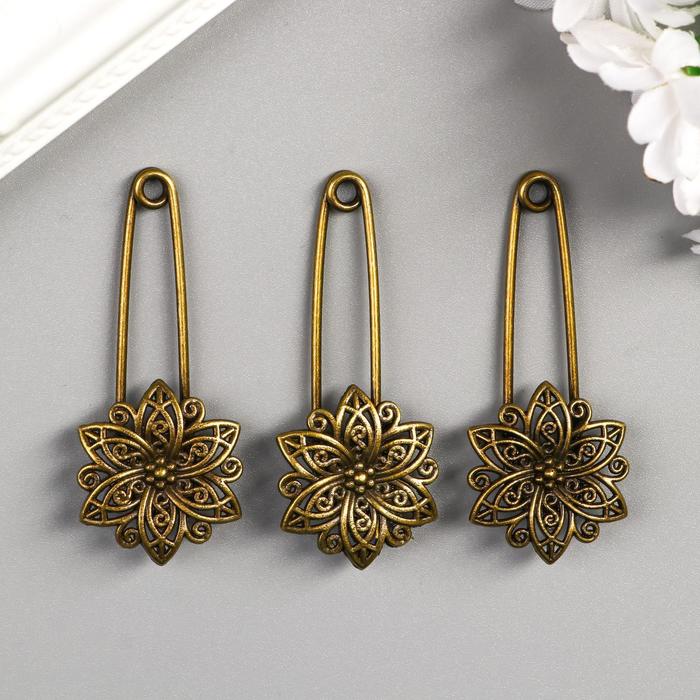 Декор металл для творчества "Булавка с цветком" под латунь (J-25) 5,5х2,5 см