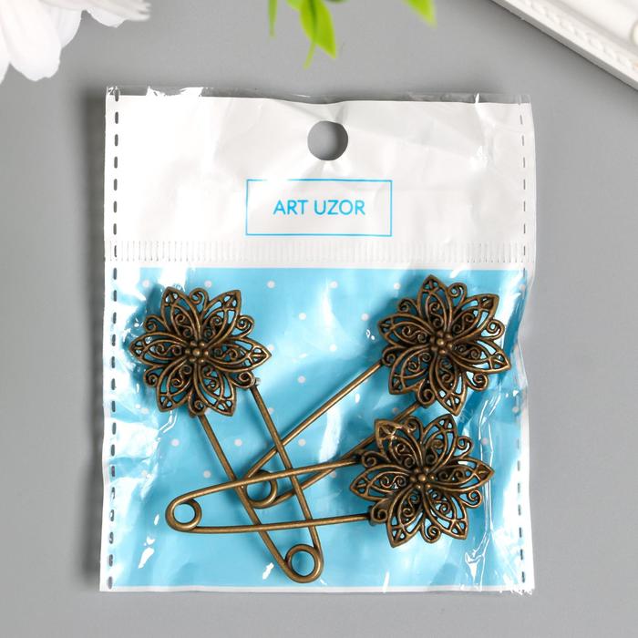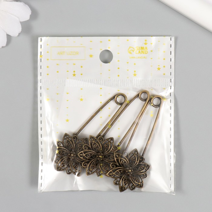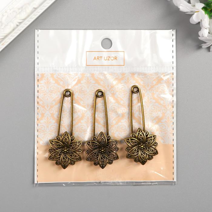 Декор металл для творчества "Булавка с цветком" под латунь (J-25) 5,5х2,5 см — Характеристики