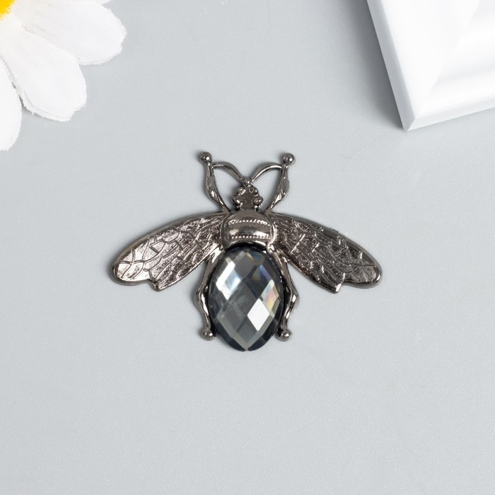 Декор для творчества металл, страз "Муха" тёмное серебро 3,5х4,7 см