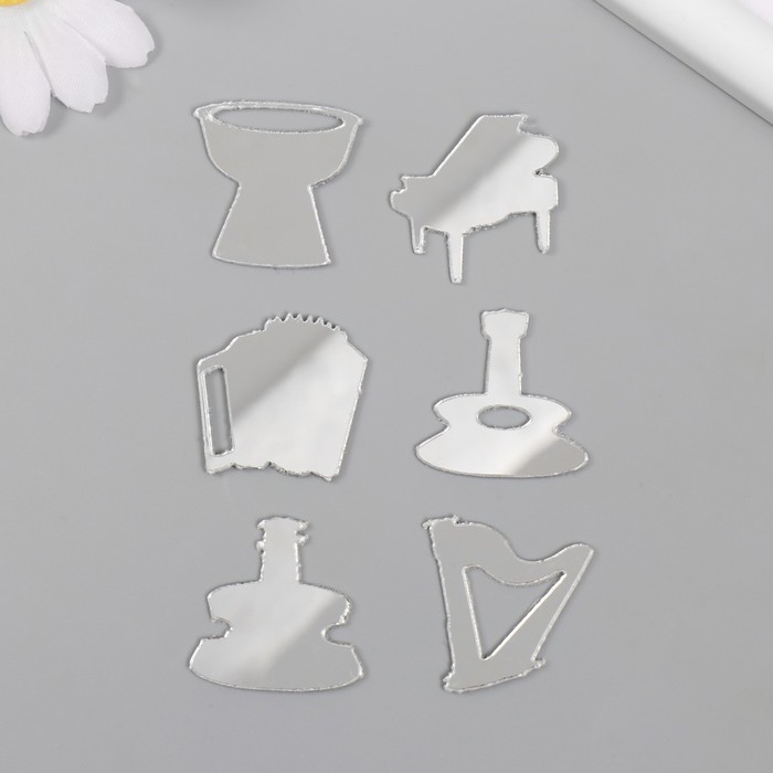 Декор для творчества пластик зеркальный «Музыкальные инструменты», набор 6 шт.