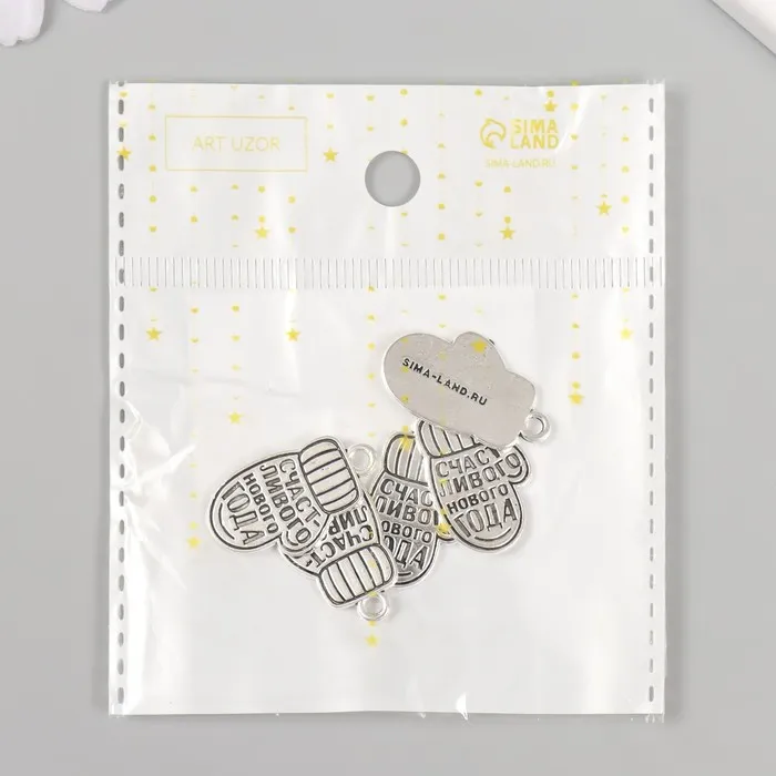 Декор металл для творчества "Варежка - Счастливого нового года" 1,5х2,5 см — Характеристики