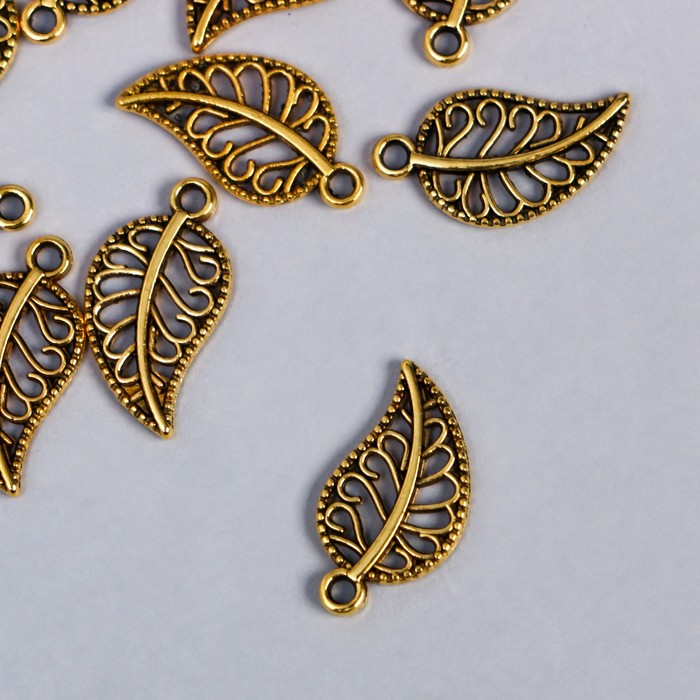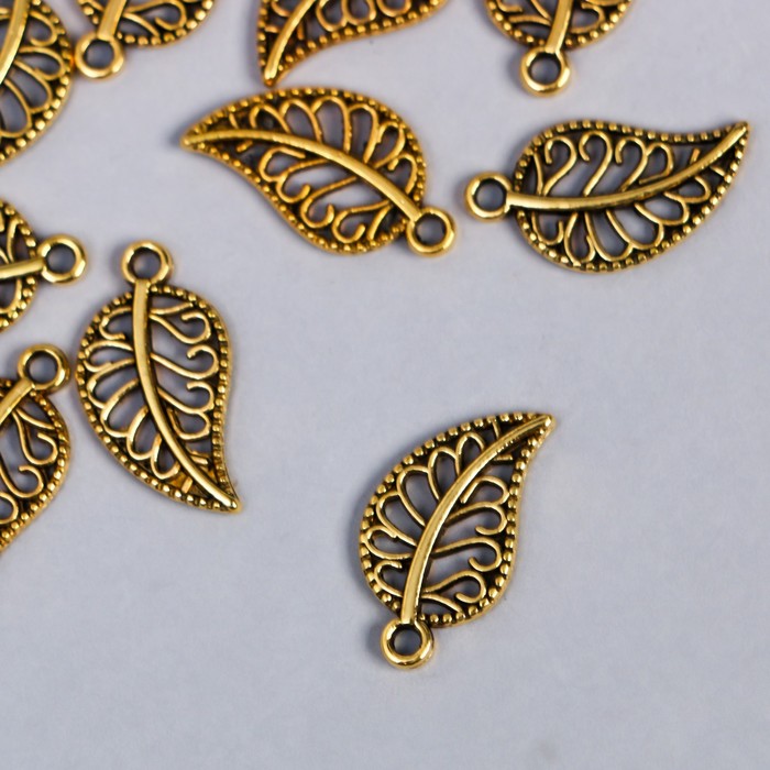 Декор металл для творчества "Золотой ажурный листик" набор 16 шт 1,8х1 см