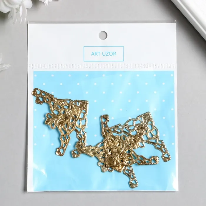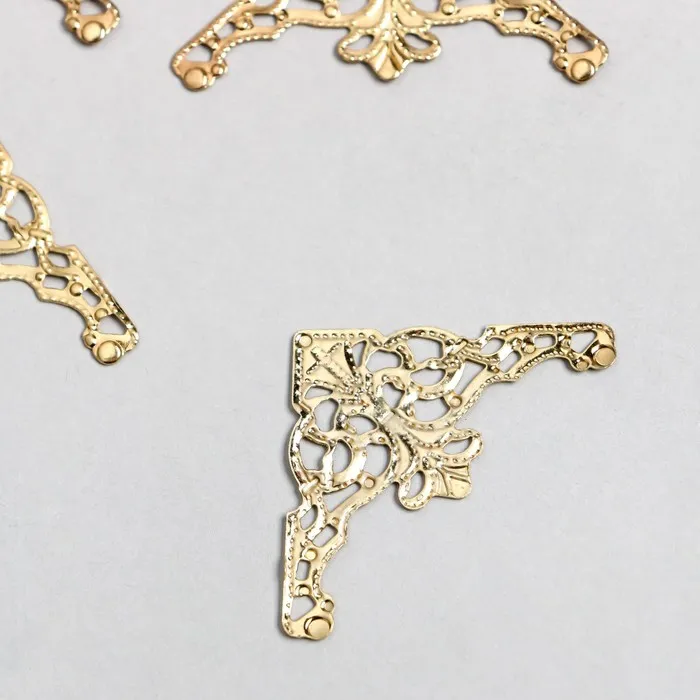 Декор металлический «Узорный уголок» набор 6 шт. золото 3.5×3.5 см