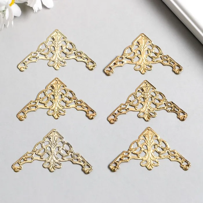 Декор металлический «Узорный уголок» набор 6 шт. золото 3.5×3.5 см — Характеристики