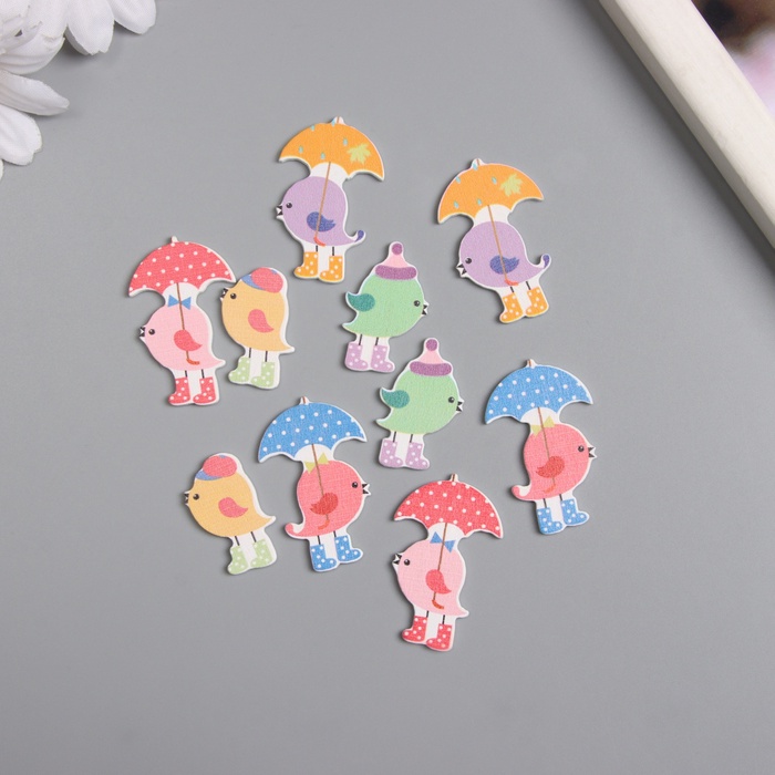 Декор для творчества дерево «Птичка с зонтом», набор 10 шт., 3.7×2.5 см