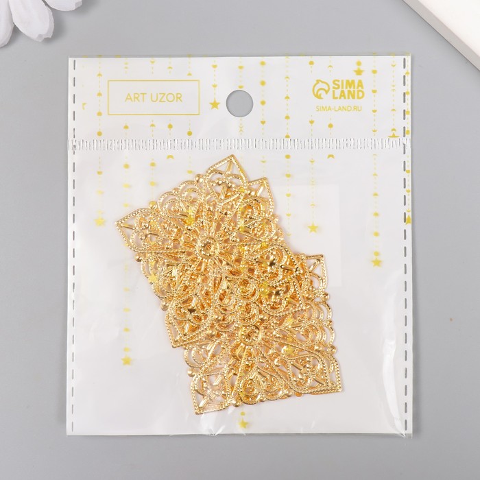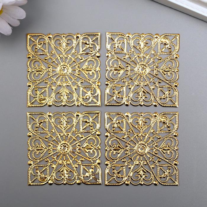 Декор металлический "Узоры в квадрате" набор 4 шт золото 4х4 см