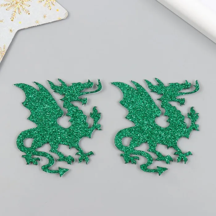 Декор на клеевой основе "Дракон" 5,5х6 см, зелёный набор 2 шт фоам глиттер