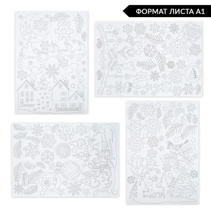 Декор на окна «Зимние узоры», 4 листа с основами для вырезания, формат А1 — Характеристики