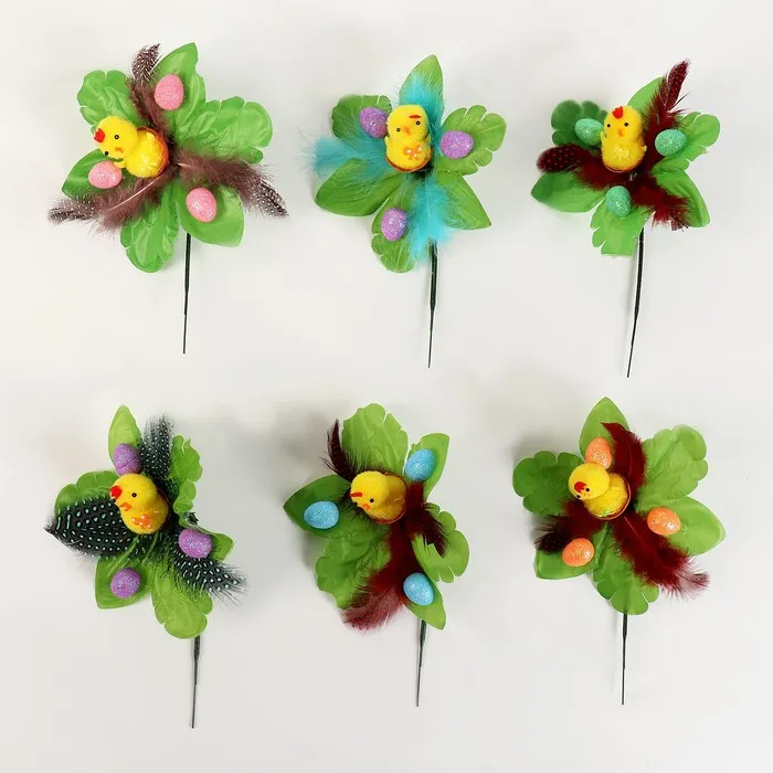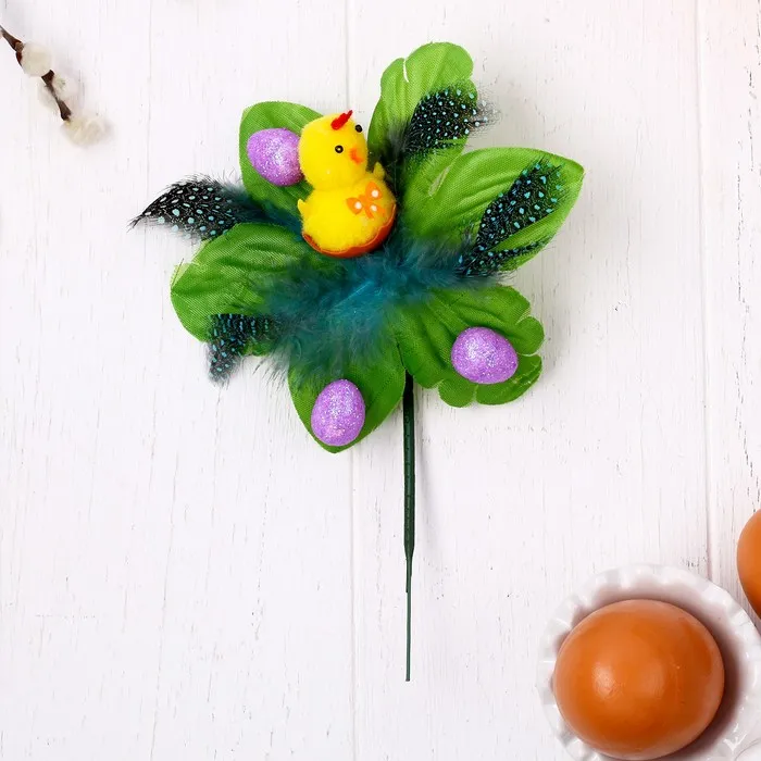 Декор на палочке «Цыплёнок на ветке с перьями» МИКС — Характеристики