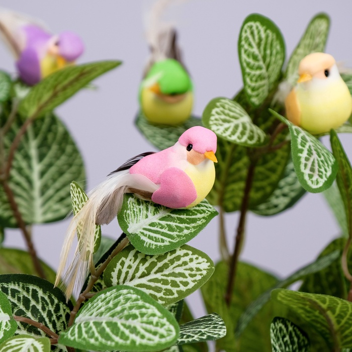 - Шесть птиц в разных цветах: В наборе представлены украшения в нескольких оттенках — это создает разнообразие в композициях. Цветовой микс подходит для оформления в разных стилях и палитрах.