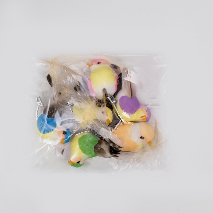 Стайка птиц для вашего декора! Набор декора «Птица» на прищепках (6 штук) — это комплект миниатюрных украшений из пенопласта и перьев в разных цветах. Прищепки помогают легко закреплять птиц на различных поверхностях.
