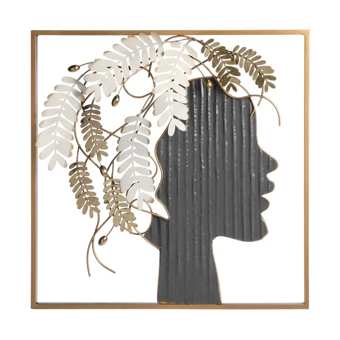 Декор настенный металл "Девушка с листьями в волосах" 56х56х6,4 см