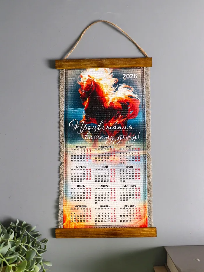 Декор настенный, панно «Календарь подвесной 2026. Огненная лошадь», 20×40 см