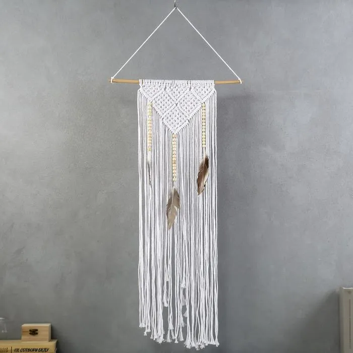 Ловец снов "Вязаные треугольники" белый 63х43 см