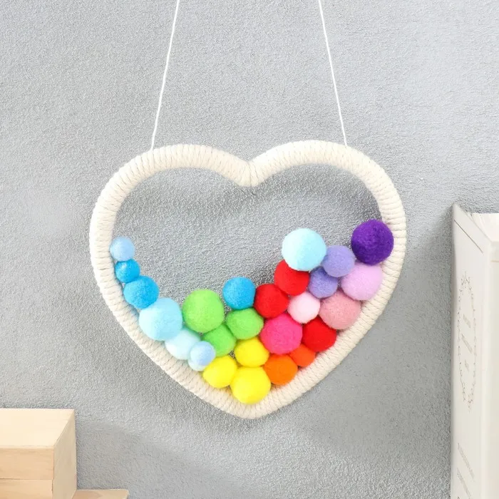 Панно настенное текстиль "Сердечко с помпончиками" 17х17 см