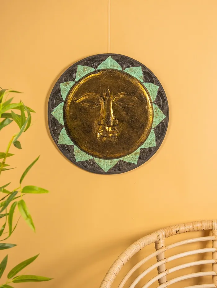 Панно "Солнце" МДФ, 40х40х2 см, цв. чёрный/золото/бирюзовый
