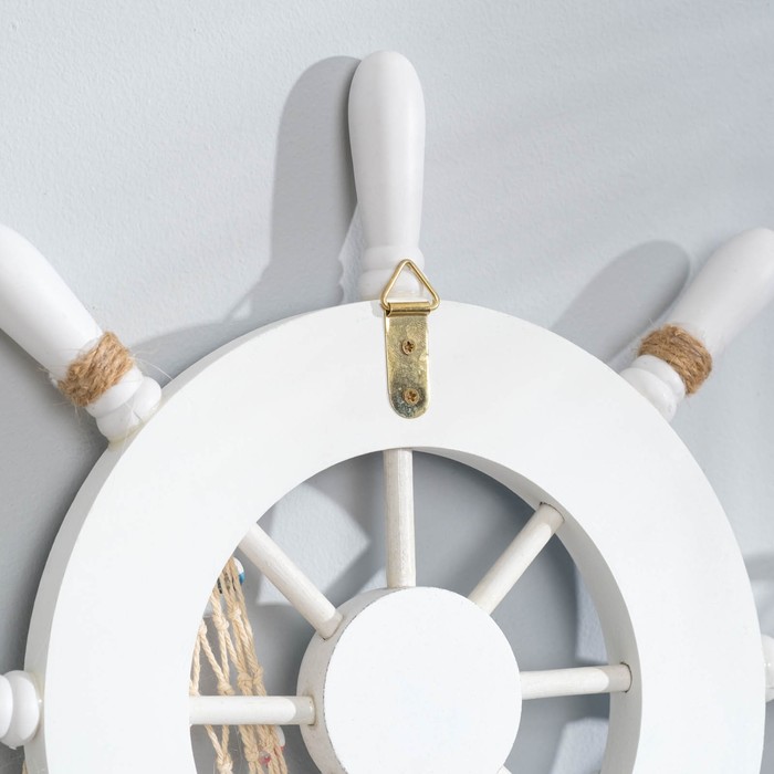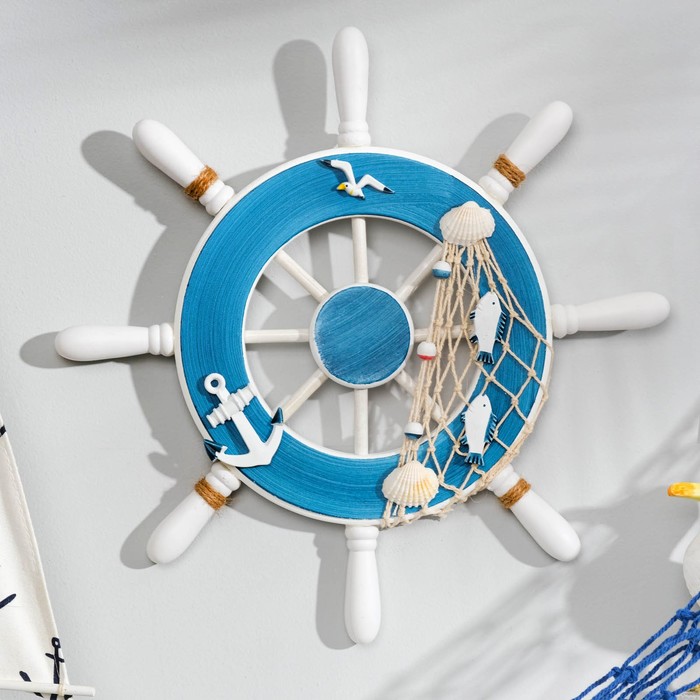 Декор настенный, панно «Штурвал с сеткой», бело-синий, 32×32×2 см — Характеристики