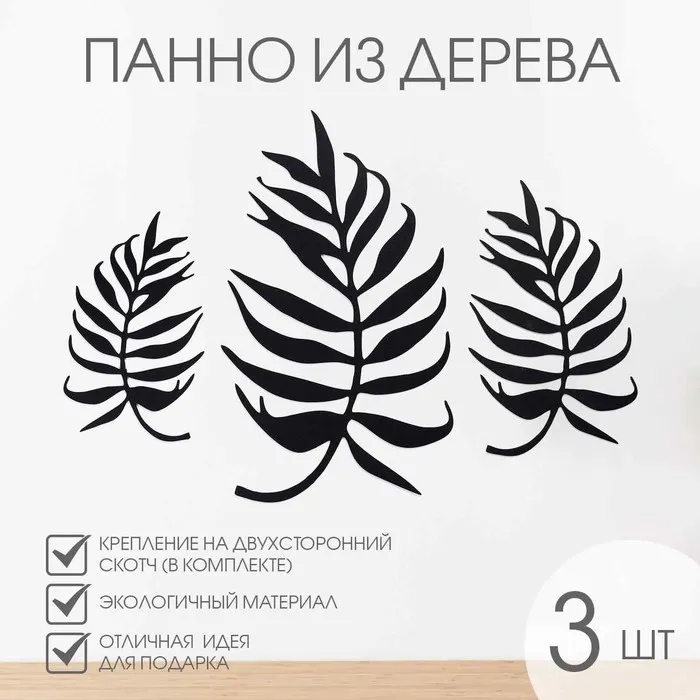 Панно на стену, декор из дерева «Листья», 3 модуля, 58×32 см