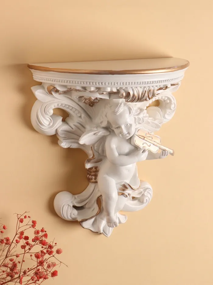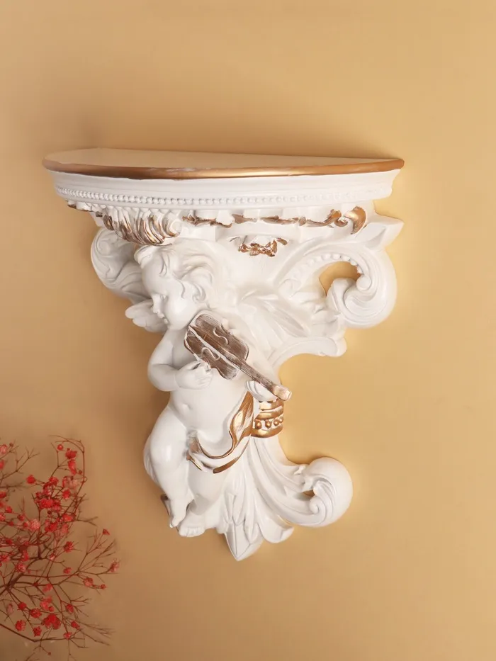 Декор настенный с полкой TAKE IT EASY «Ангел», панно, 24×21 см, белая с золотом — Характеристики