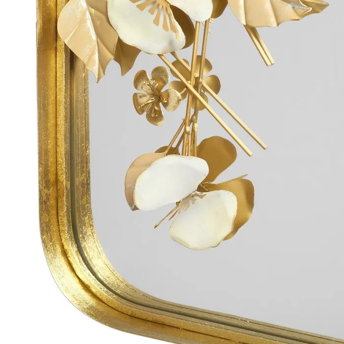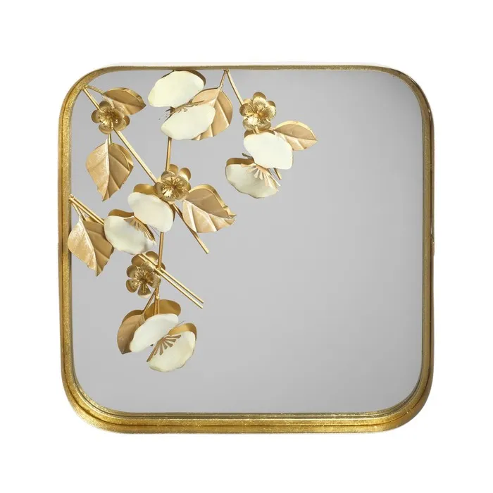 Декор настенный с зеркалом «Орхидеи в листьях», панно металл под золото, 55.2×55.2×8.3 см — Характеристики