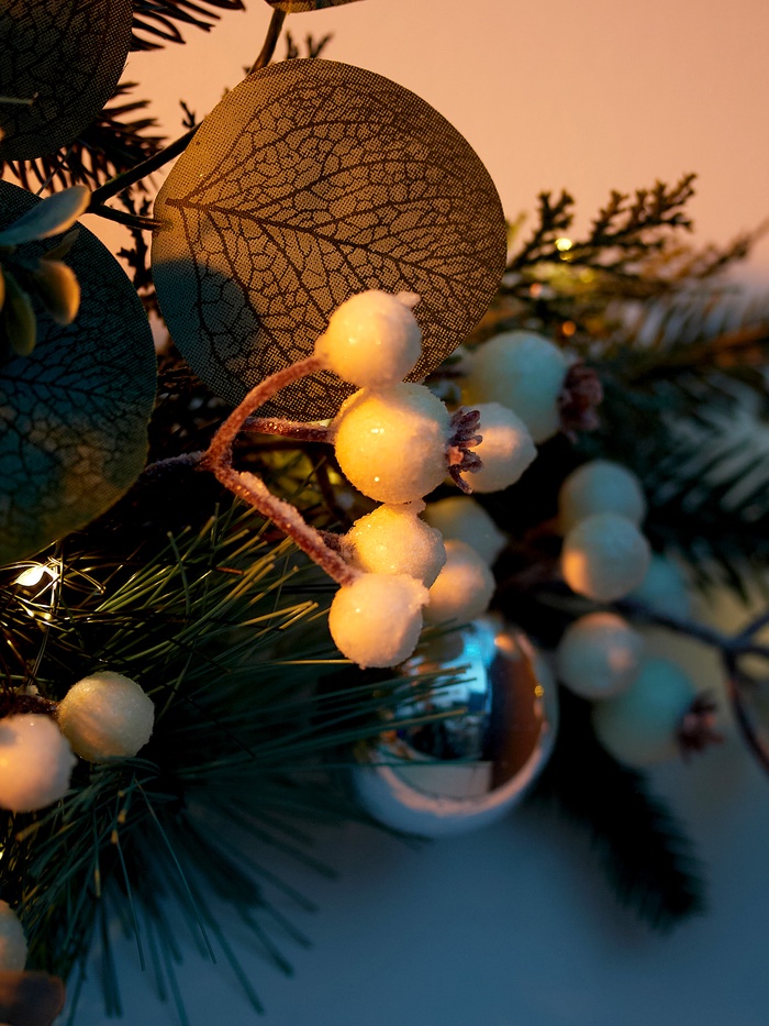 Настенный декор объединяет в себе природную эстетику и современное световое оформление. Его размеры 72×20 см делают изделие заметным и эффектным украшением любого помещения, придавая интерьеру праздничное настроение и уют. Тёплое белое свечение 18 светодиодов создаёт мягкий и равномерный свет, который подчёркивает детали композиции и наполняет пространство комфортом.
