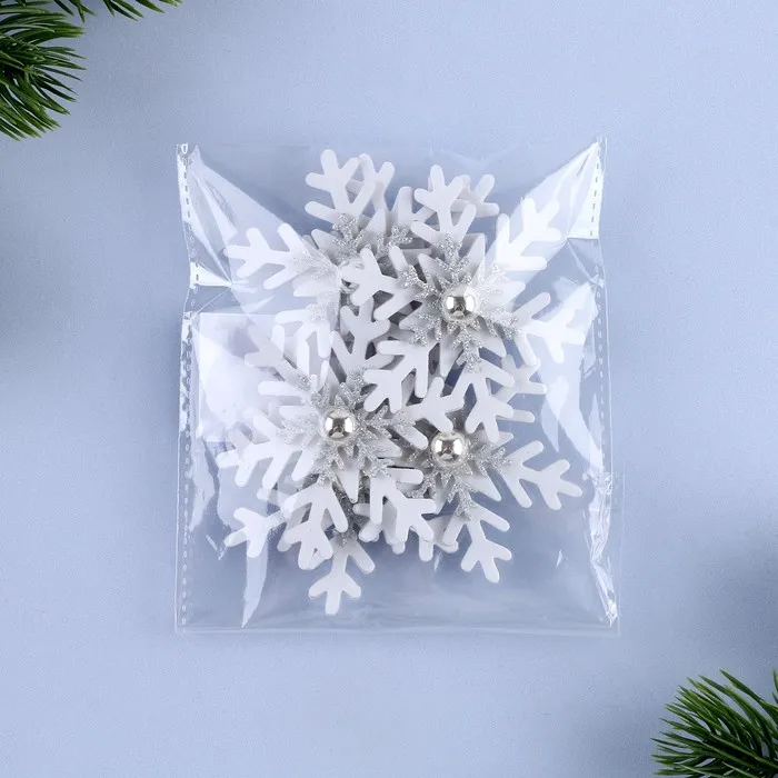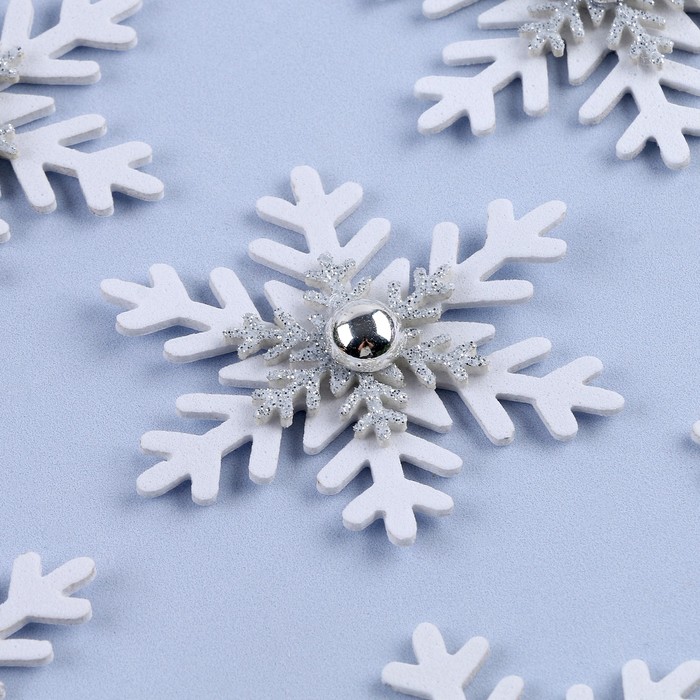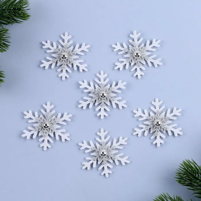 Декор «Новогодняя снежинка», белый с серебром, набор 6 шт. — Характеристики