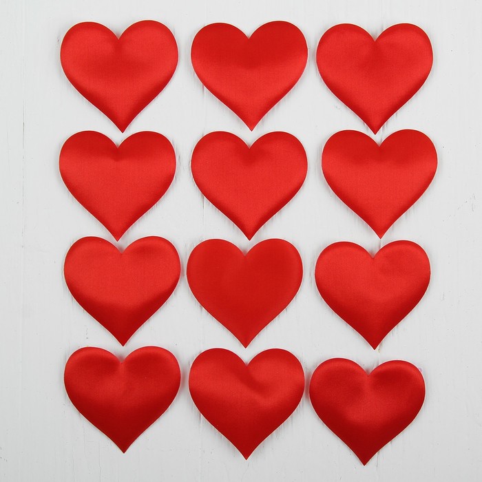 Сердечки декоративные, набор 12 шт., размер 1 шт: 6,5×5 см, цвет красный