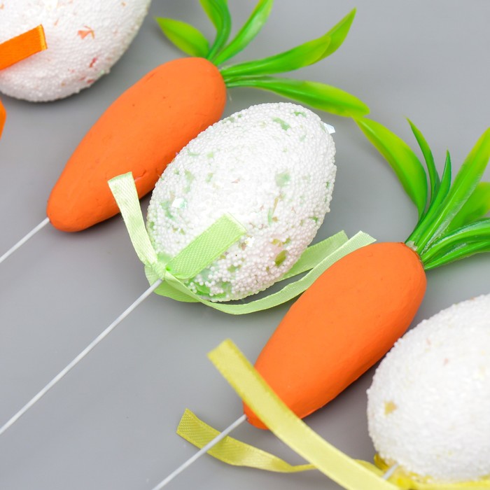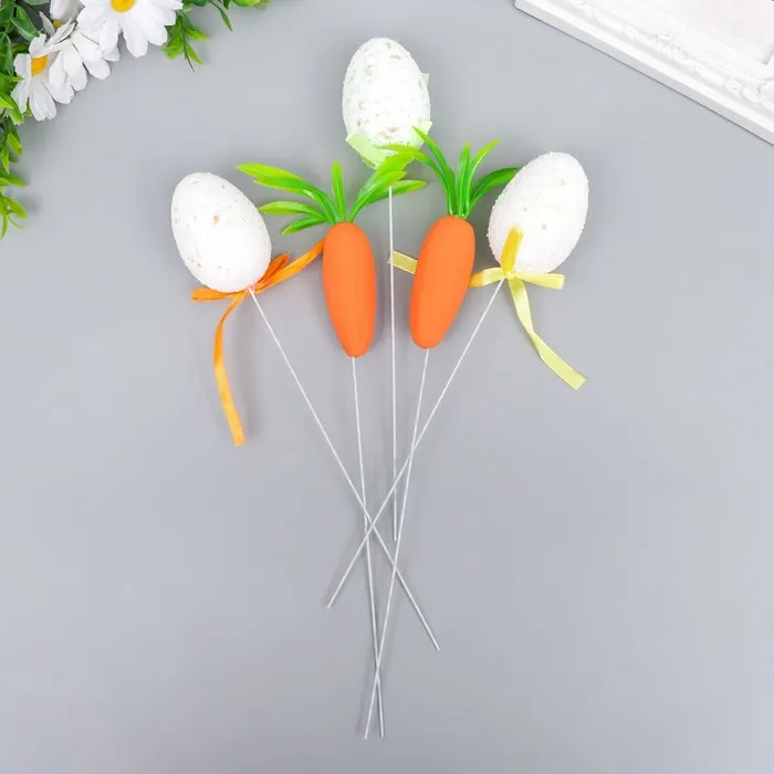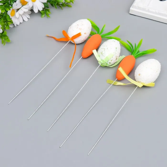 Декор пасхальный на палочке "Яички в посыпке и морковки" набор 5 шт 6х4 см — Характеристики