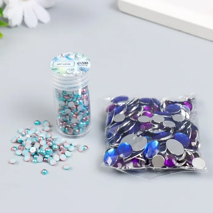 Декор «Полубусины и стразы. Градиент голубой», d=4 мм, 10 г, 200 шт., 5×2.5 см — Характеристики