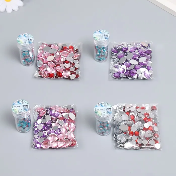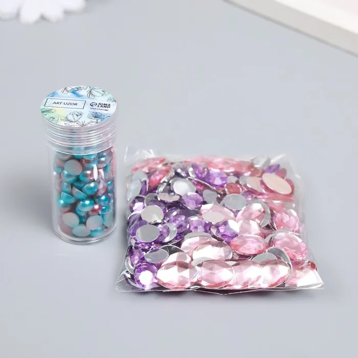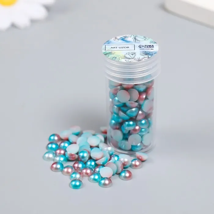 Декор "Полубусины и стразы. Градиент голубой" d=6 мм 10г 200 шт 5х2,5 см, МИКС — Характеристики